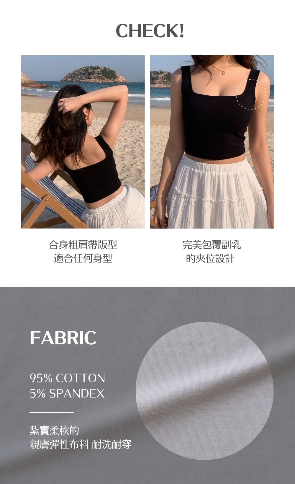 ⋄ 合身粗肩帶版型 適合任何身型