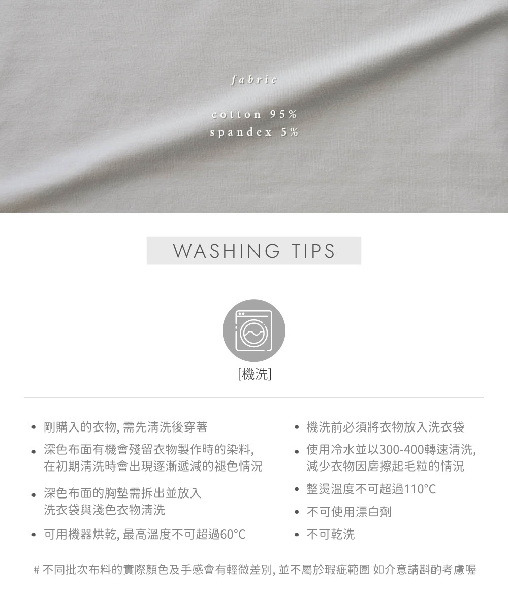 ⋄ 紮實柔軟的親膚彈性布料 耐洗耐穿