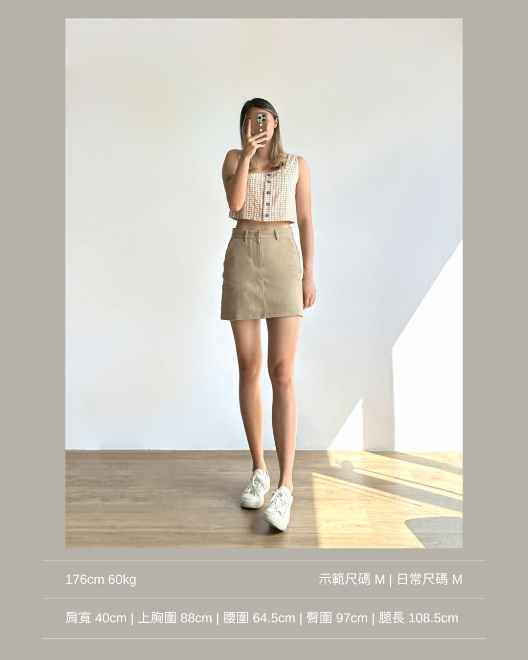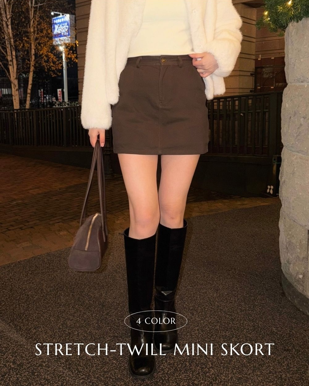 兼顧修飾比例+舒適感的彈力斜紋短裙