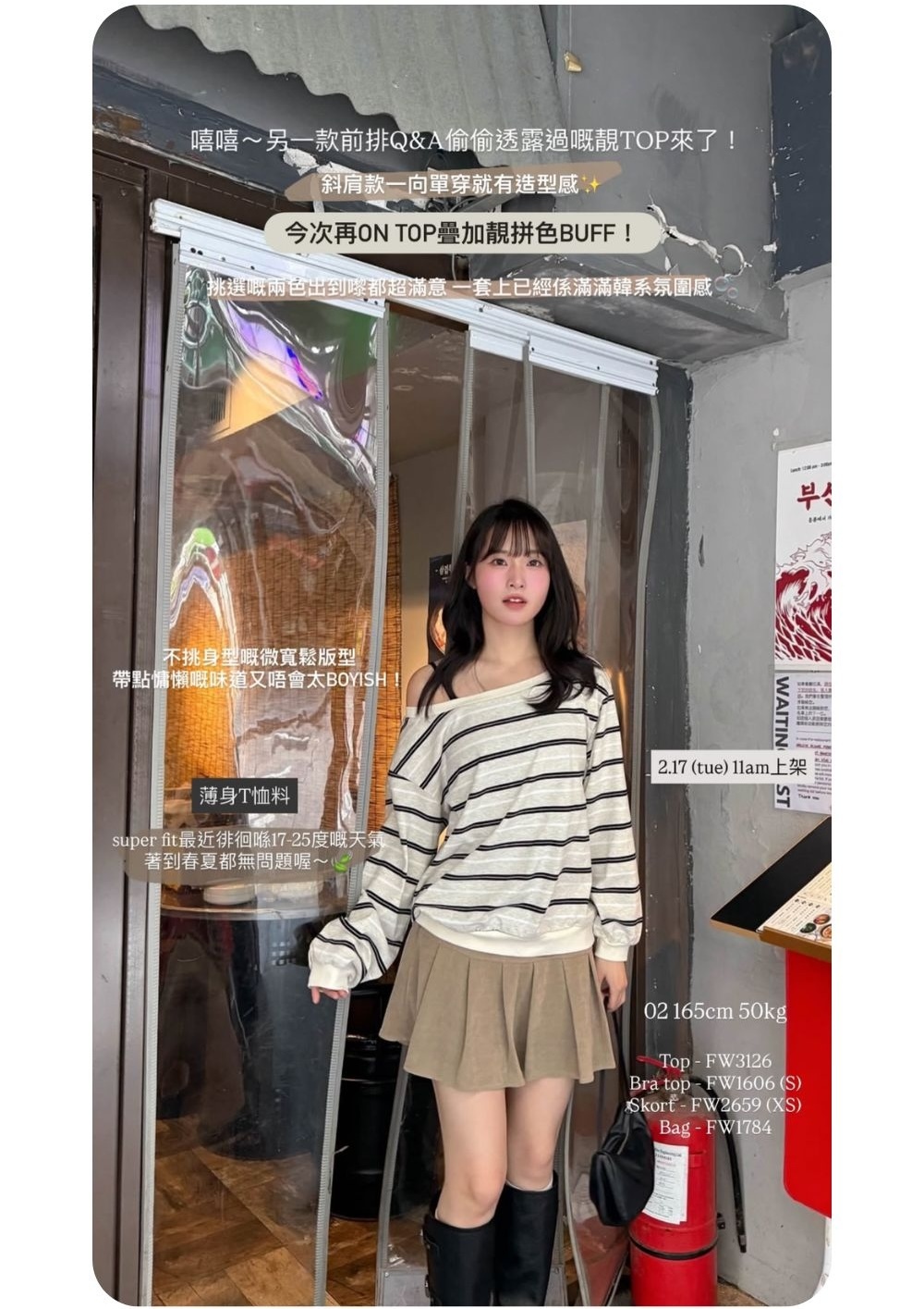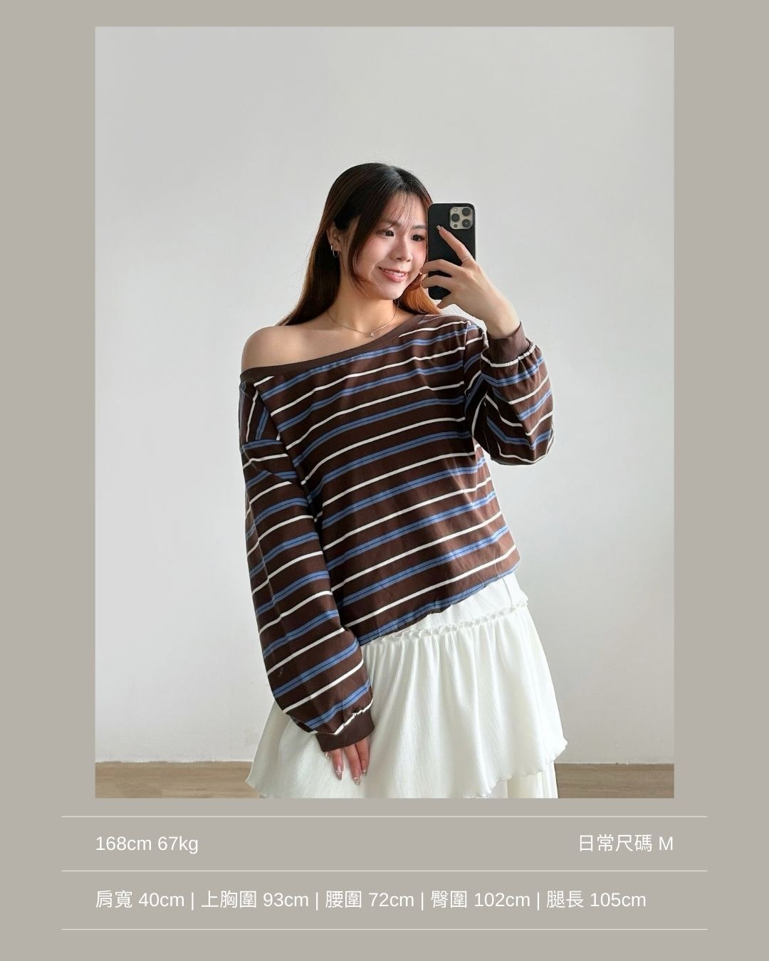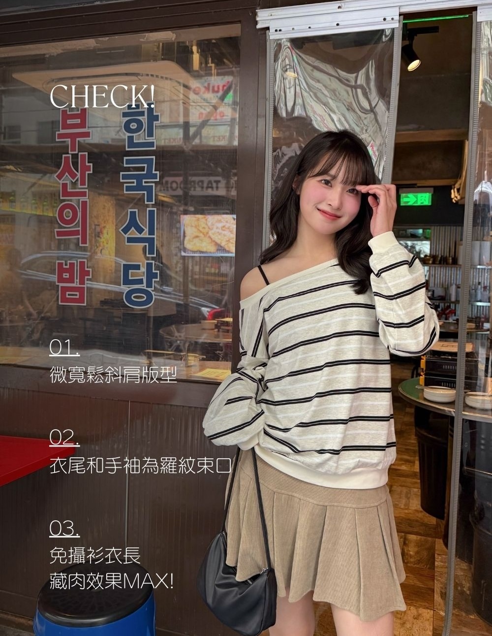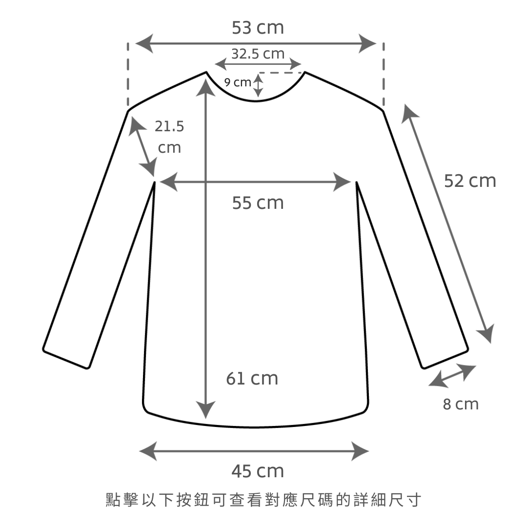 微寬鬆斜肩版型 / 衣尾和手袖為羅紋束口 / 免攝衫衣長 / 藏肉效果max