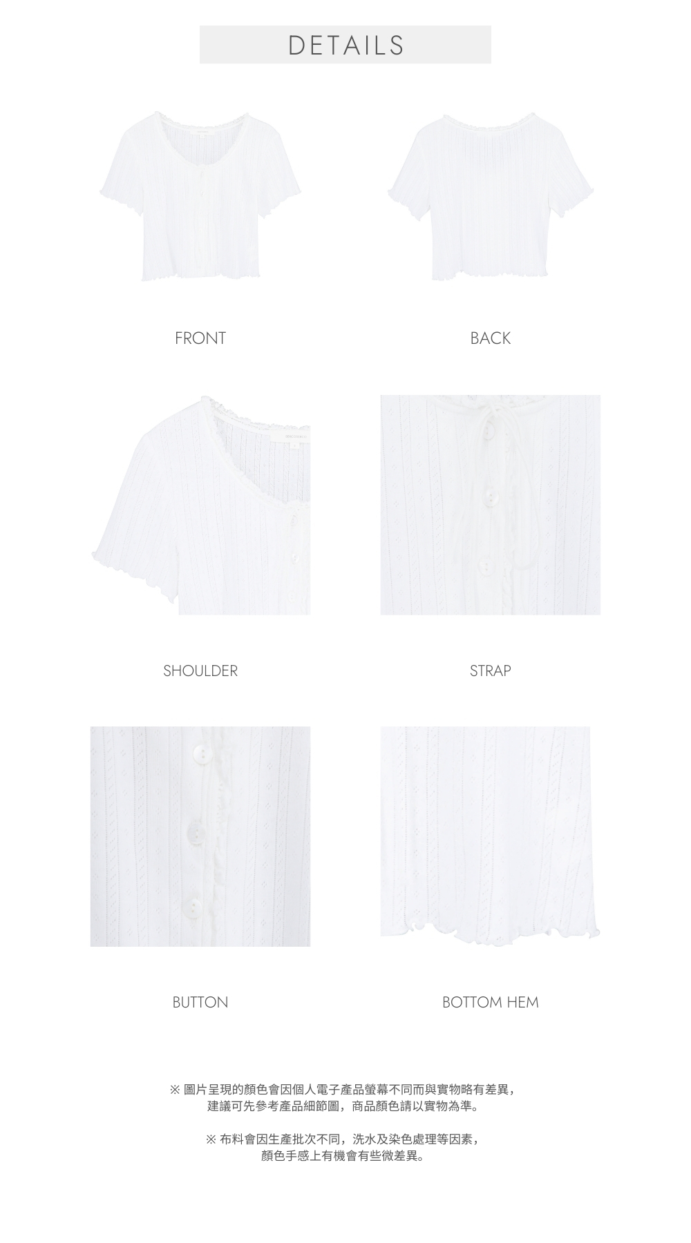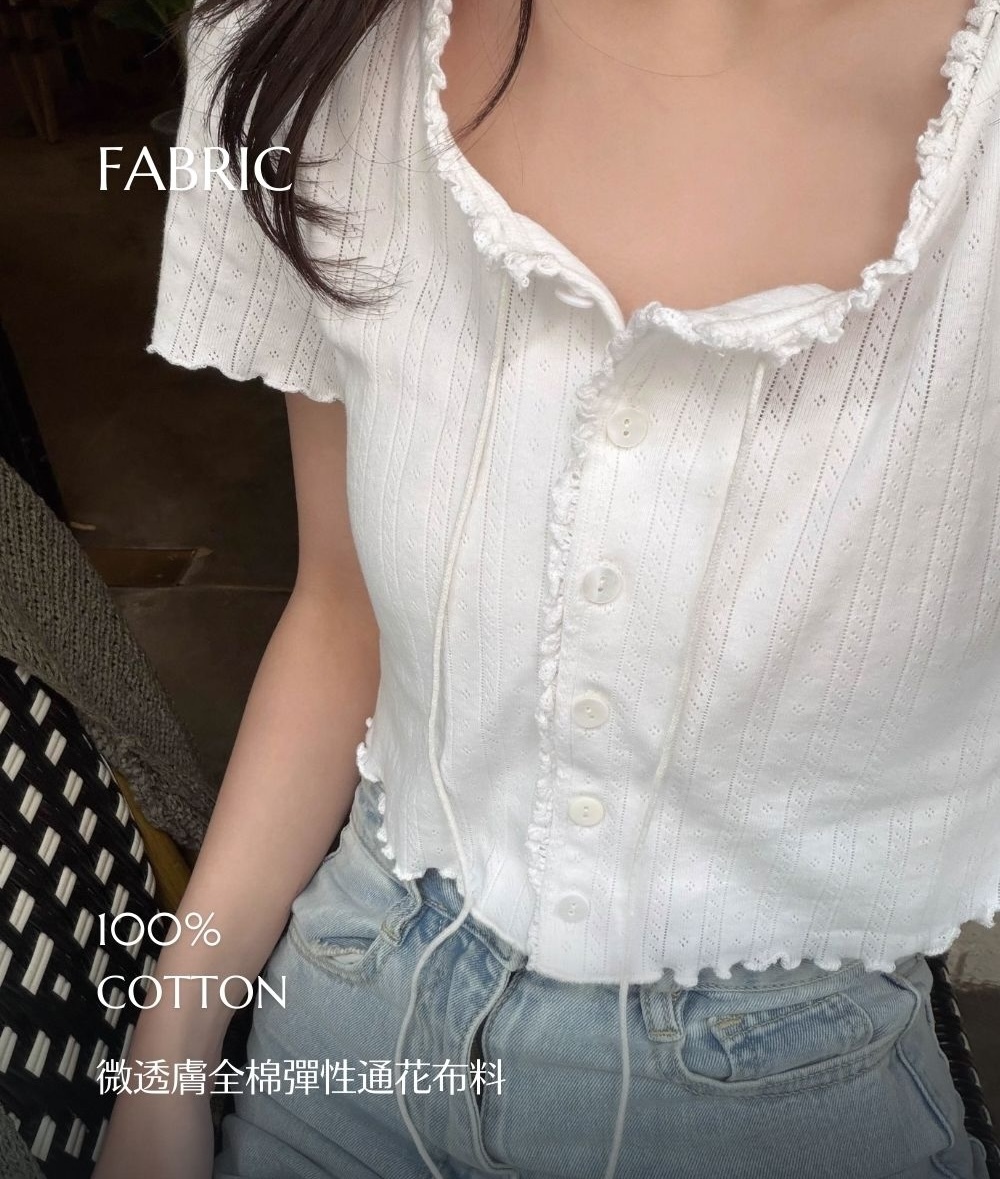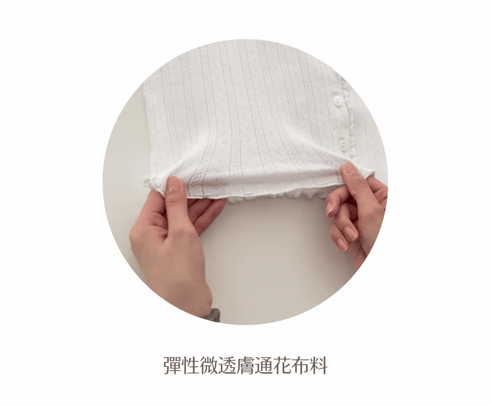 薄款 / 彈性通花布料 / 100%全棉 / 微透膚 / 可單穿可當小外套