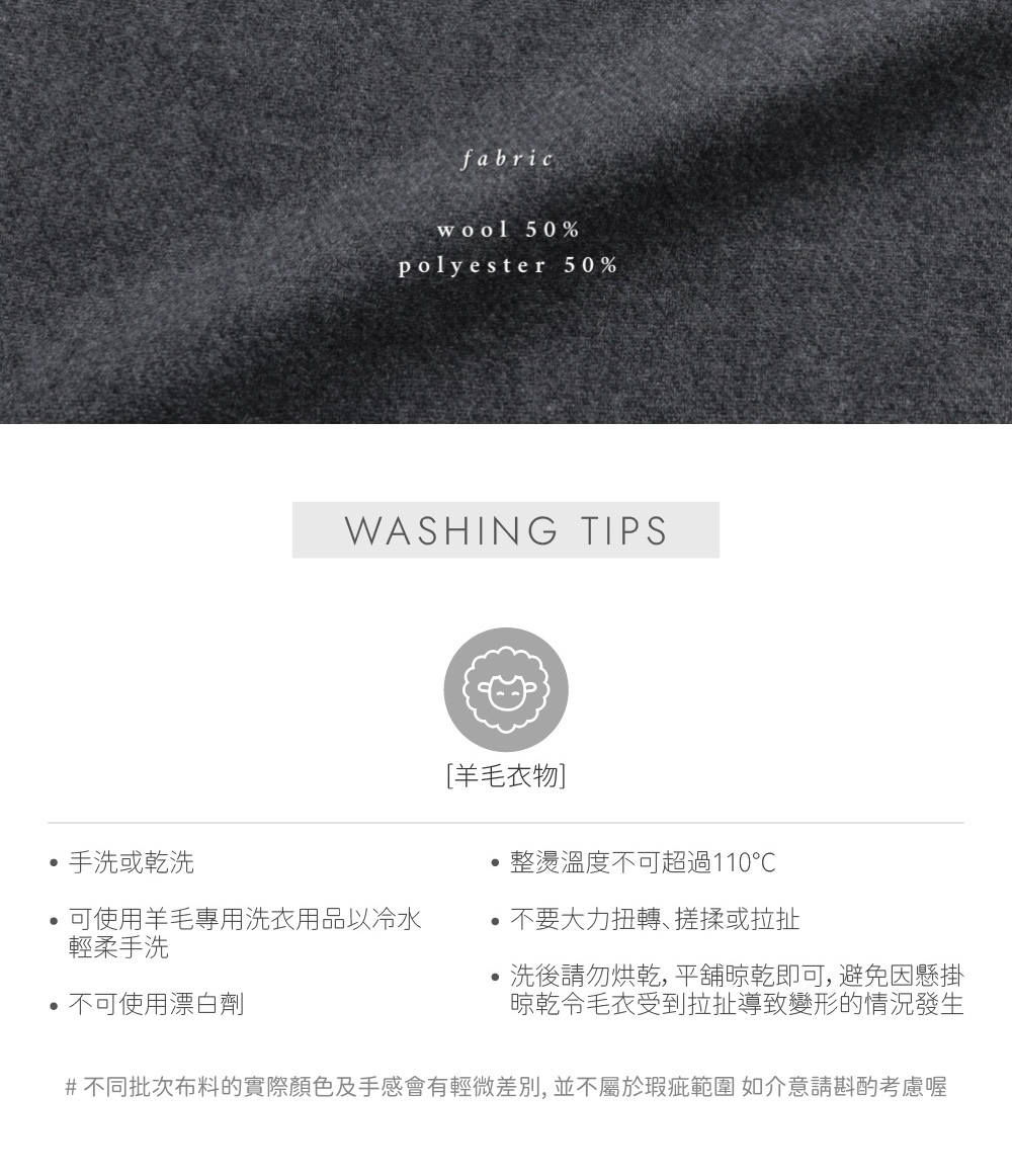※ 羊毛衣物建議手洗 / 乾洗,可於清洗前查閱下方洗滌資訊