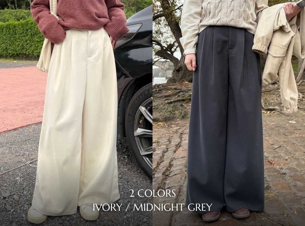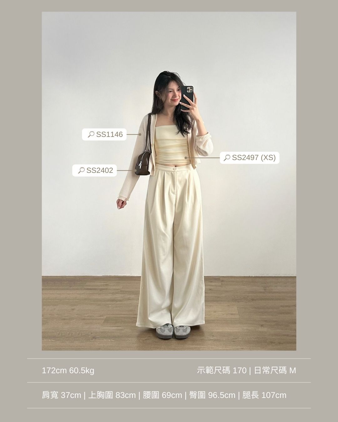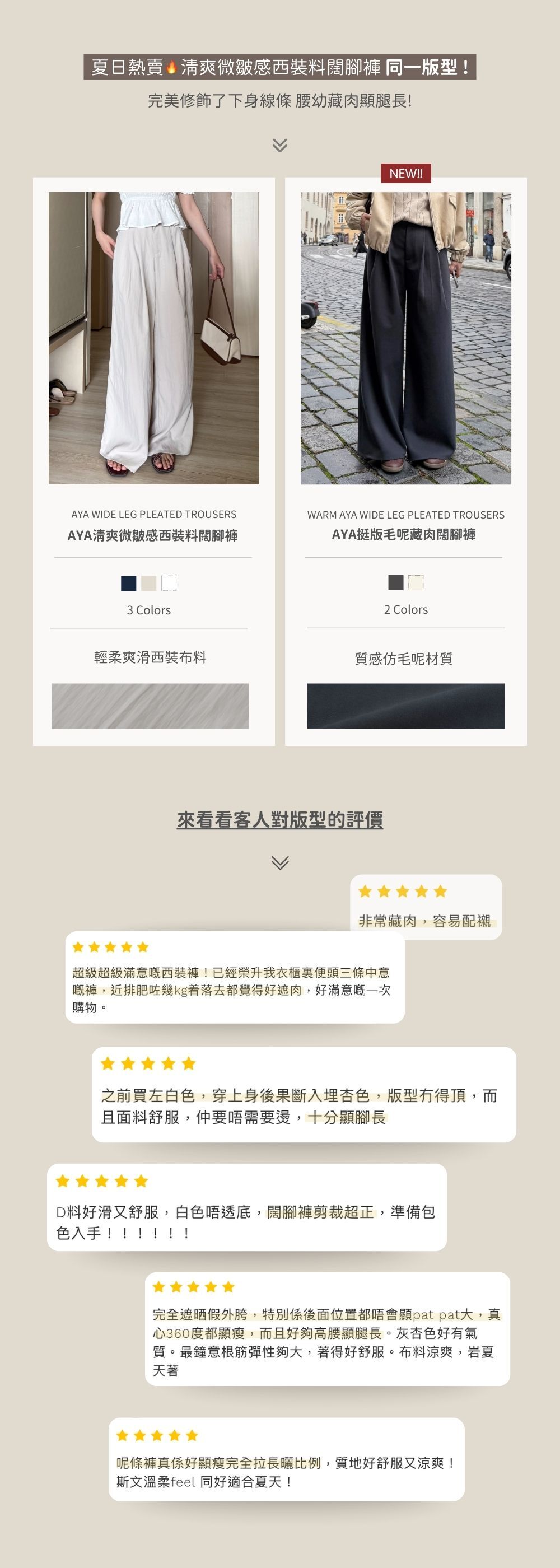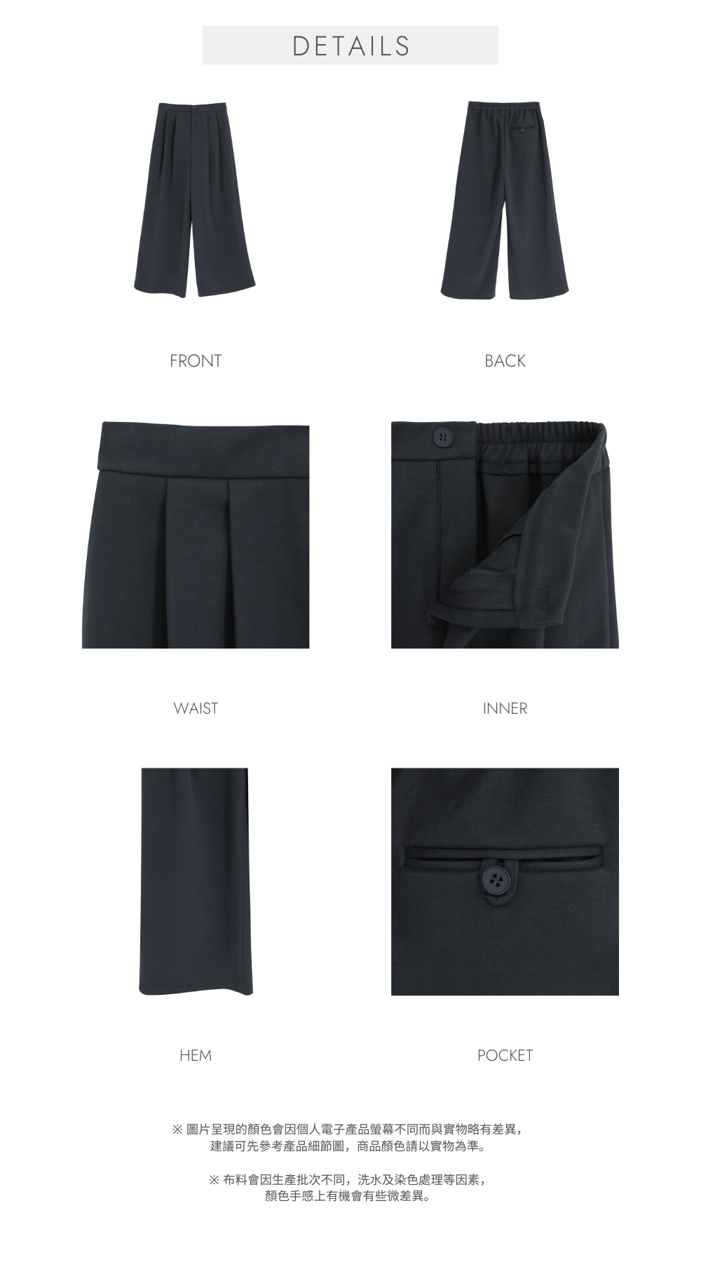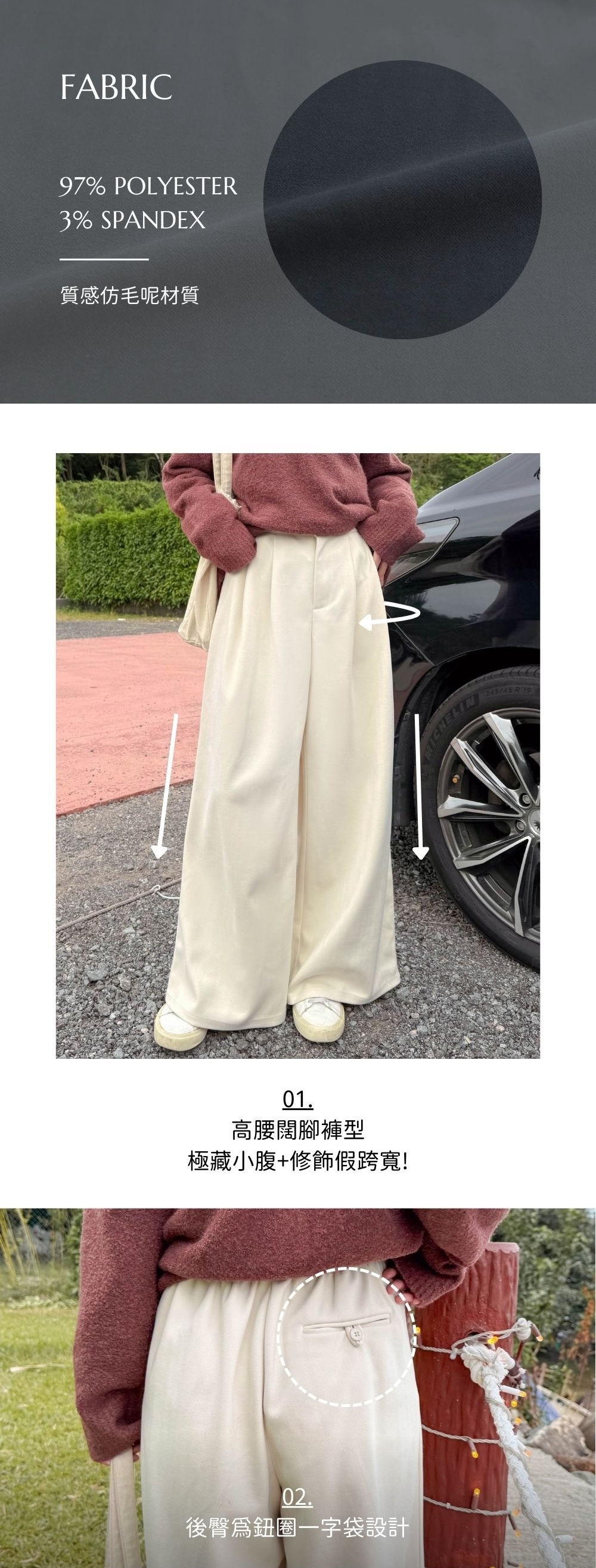 高腰闊腳褲型 / 半橡筋腰設計 / 極藏小腹 / 修飾假跨寬 / 完美修飾各種腿型