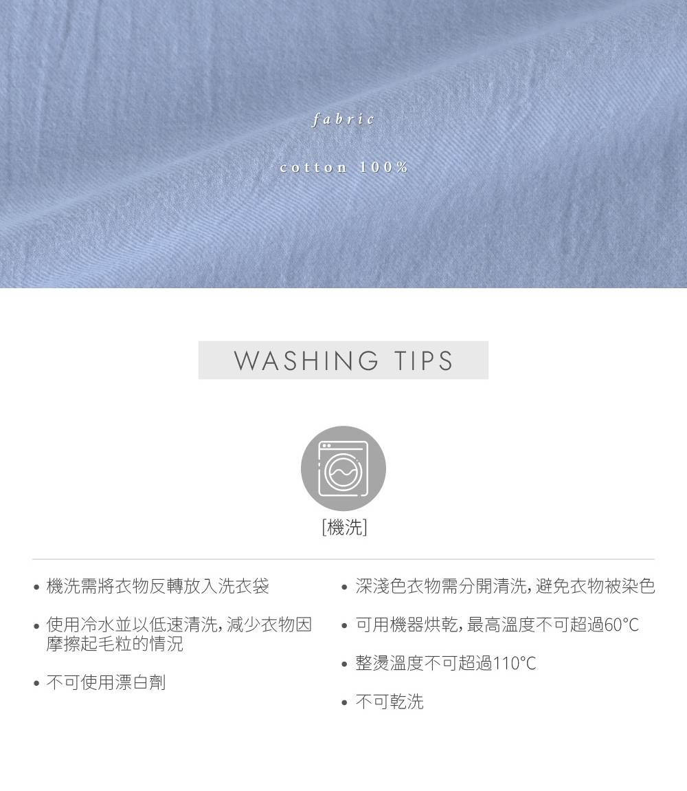 ⋄ 柔軟親膚的水洗棉布料