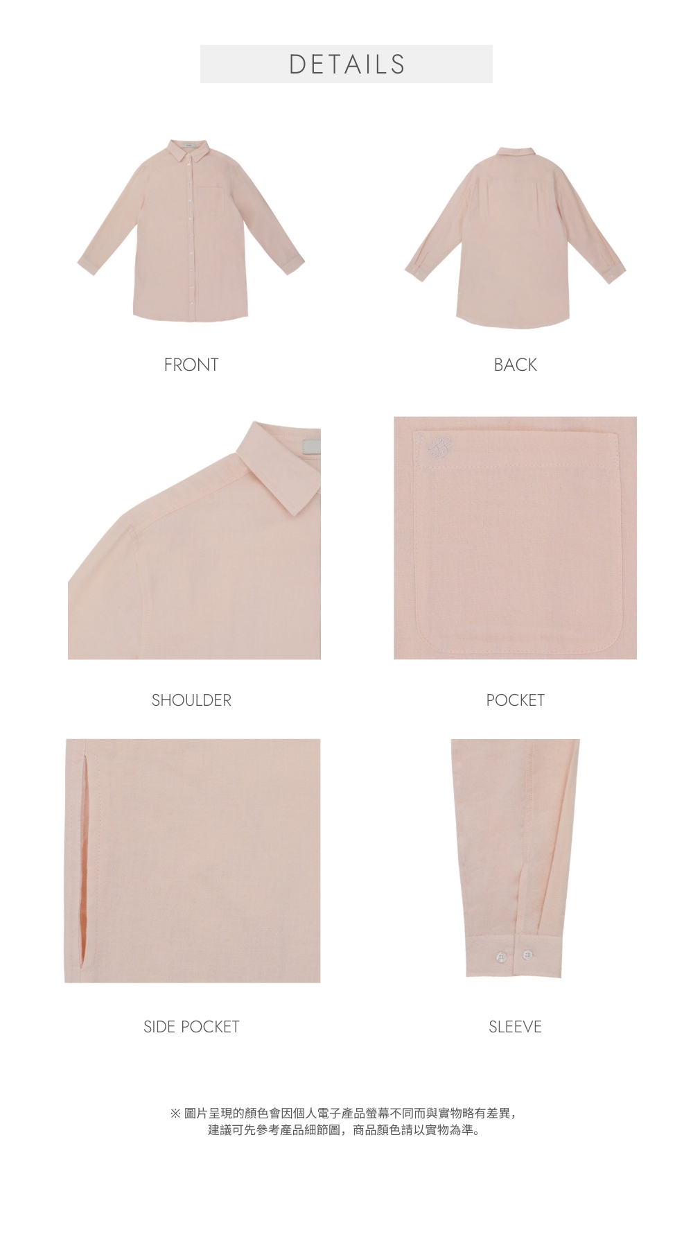 ※ 淡櫻粉及白色需配搭打底一同穿著