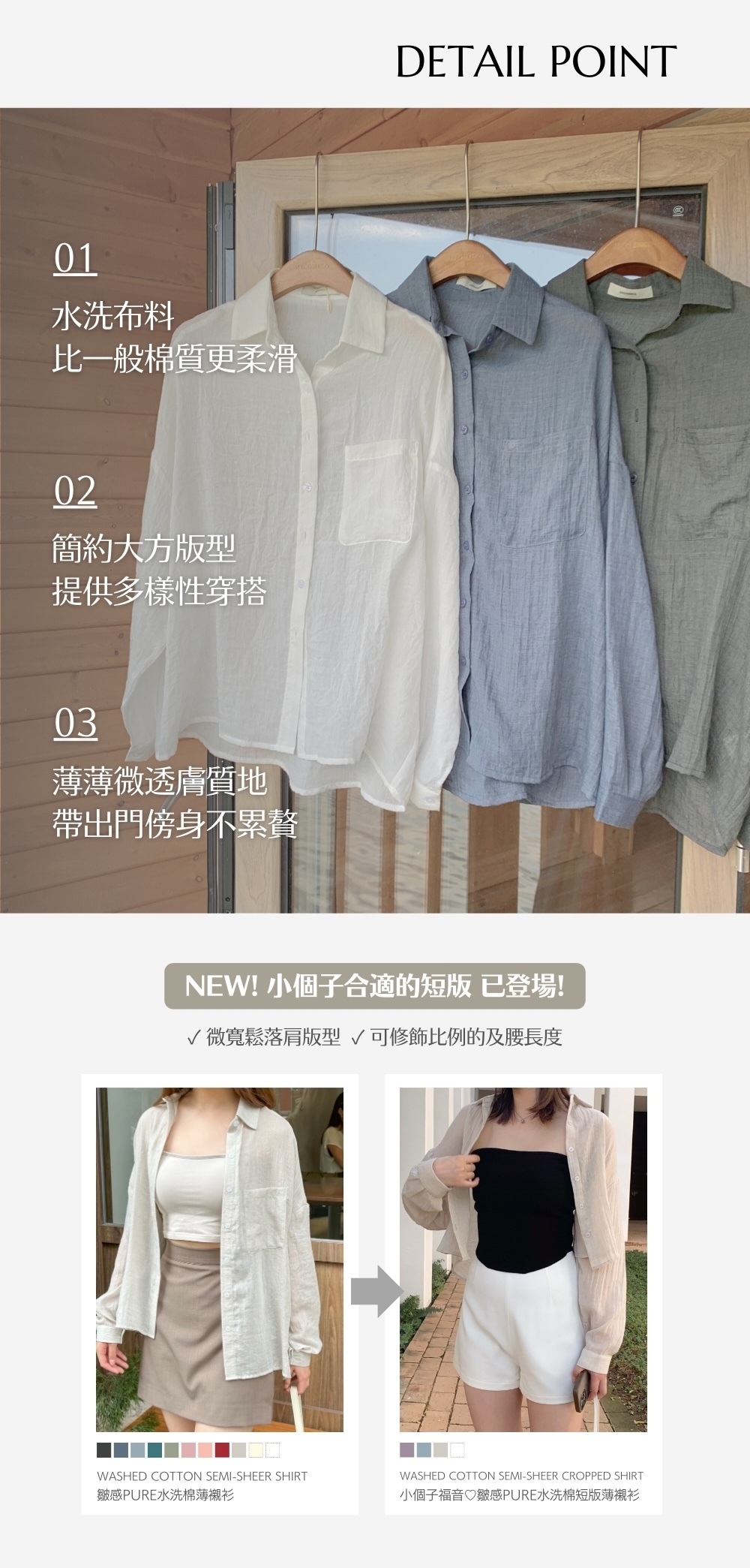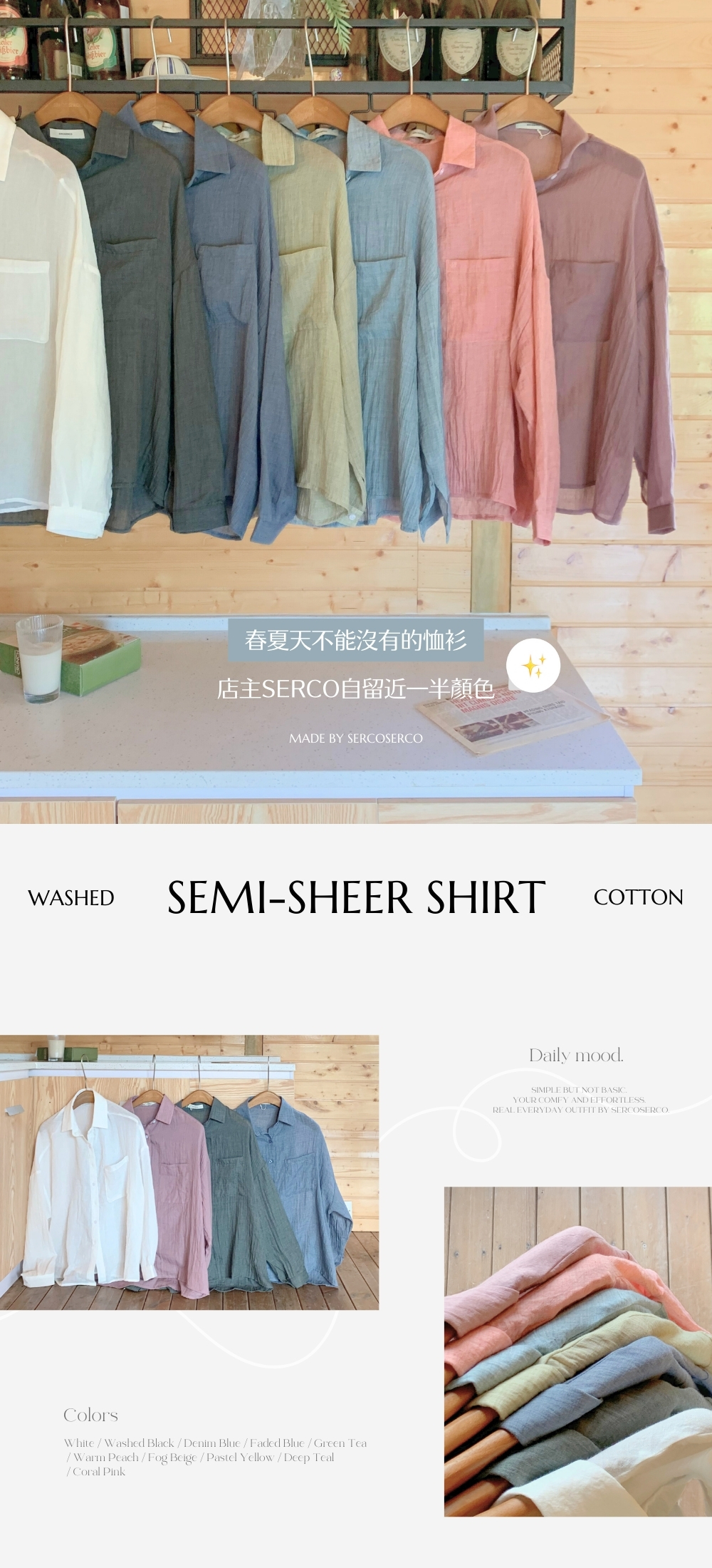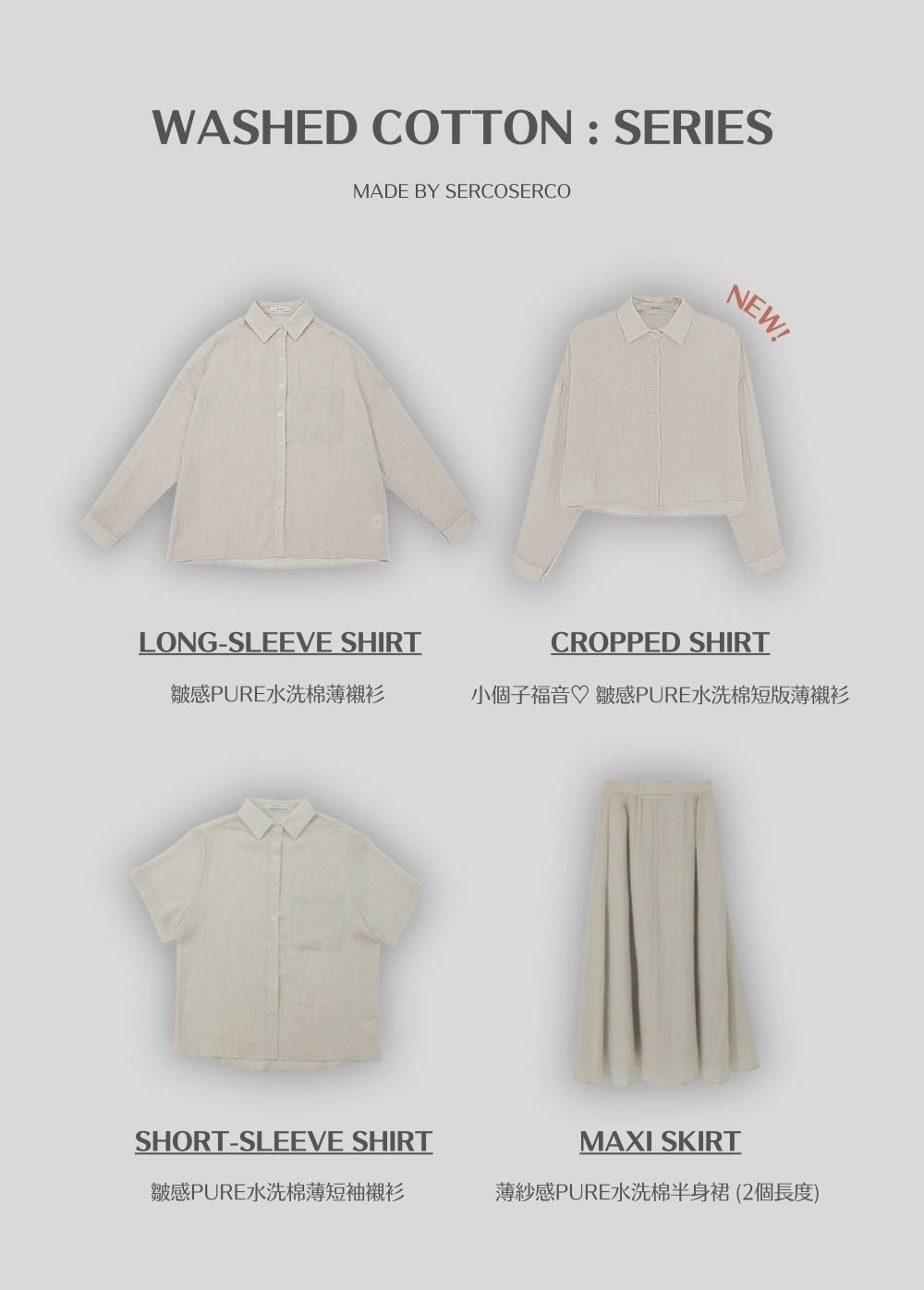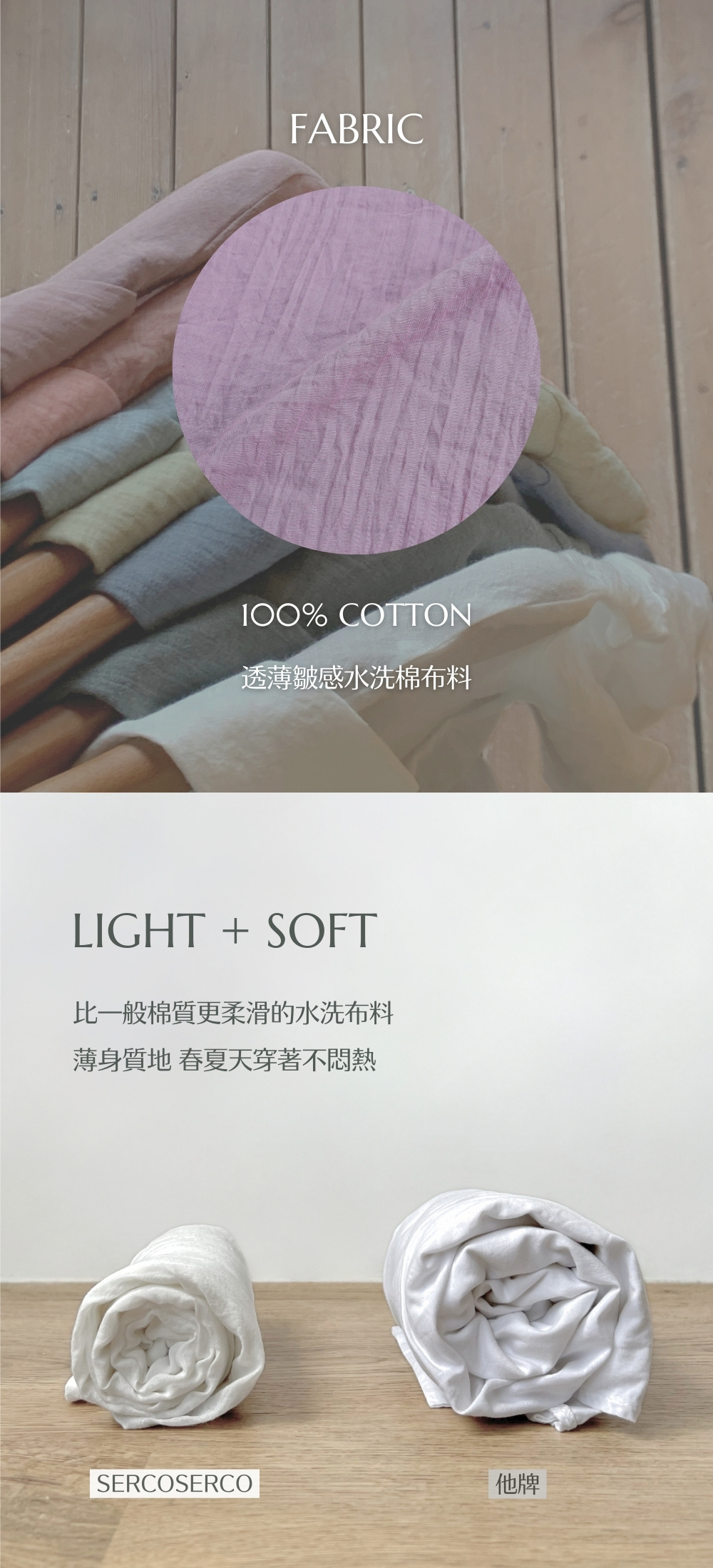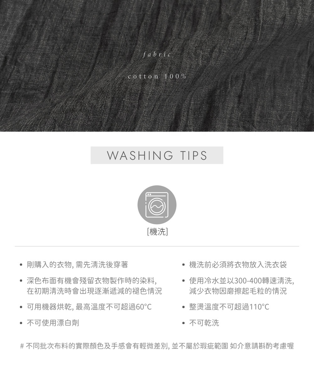 ⋄ 透薄皺感水洗棉布料 洗後免燙