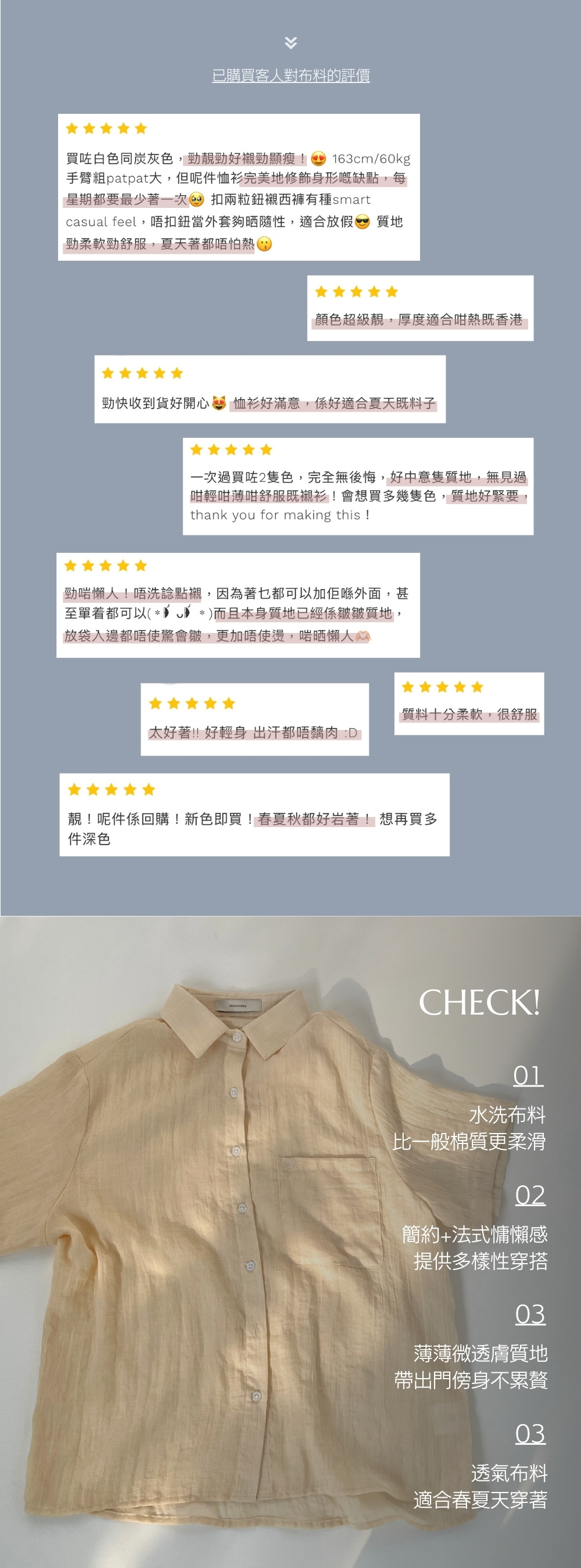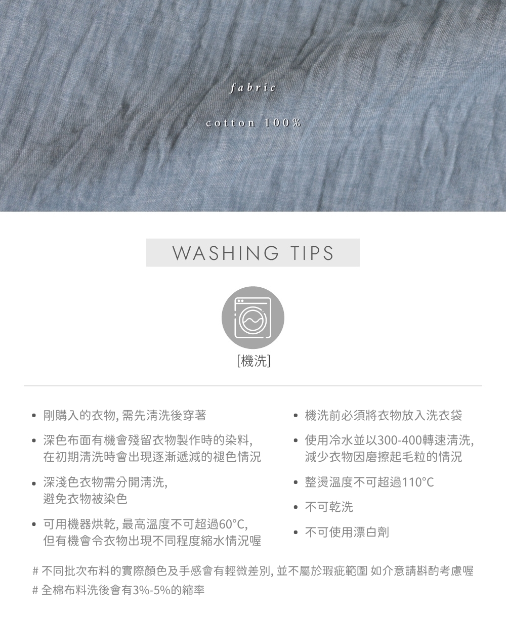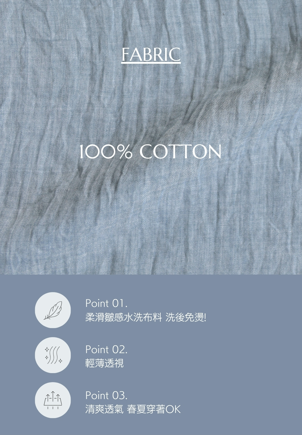 ⋄ 透薄皺感水洗棉布料 洗後免燙
