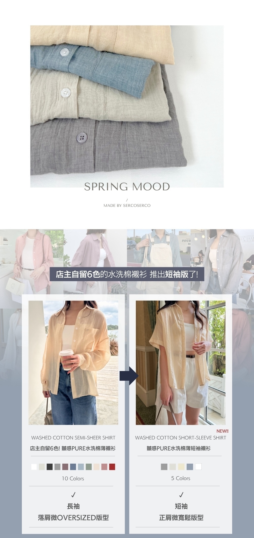 全扣鈕 / 開鈕穿著也能保持清爽、輕盈感