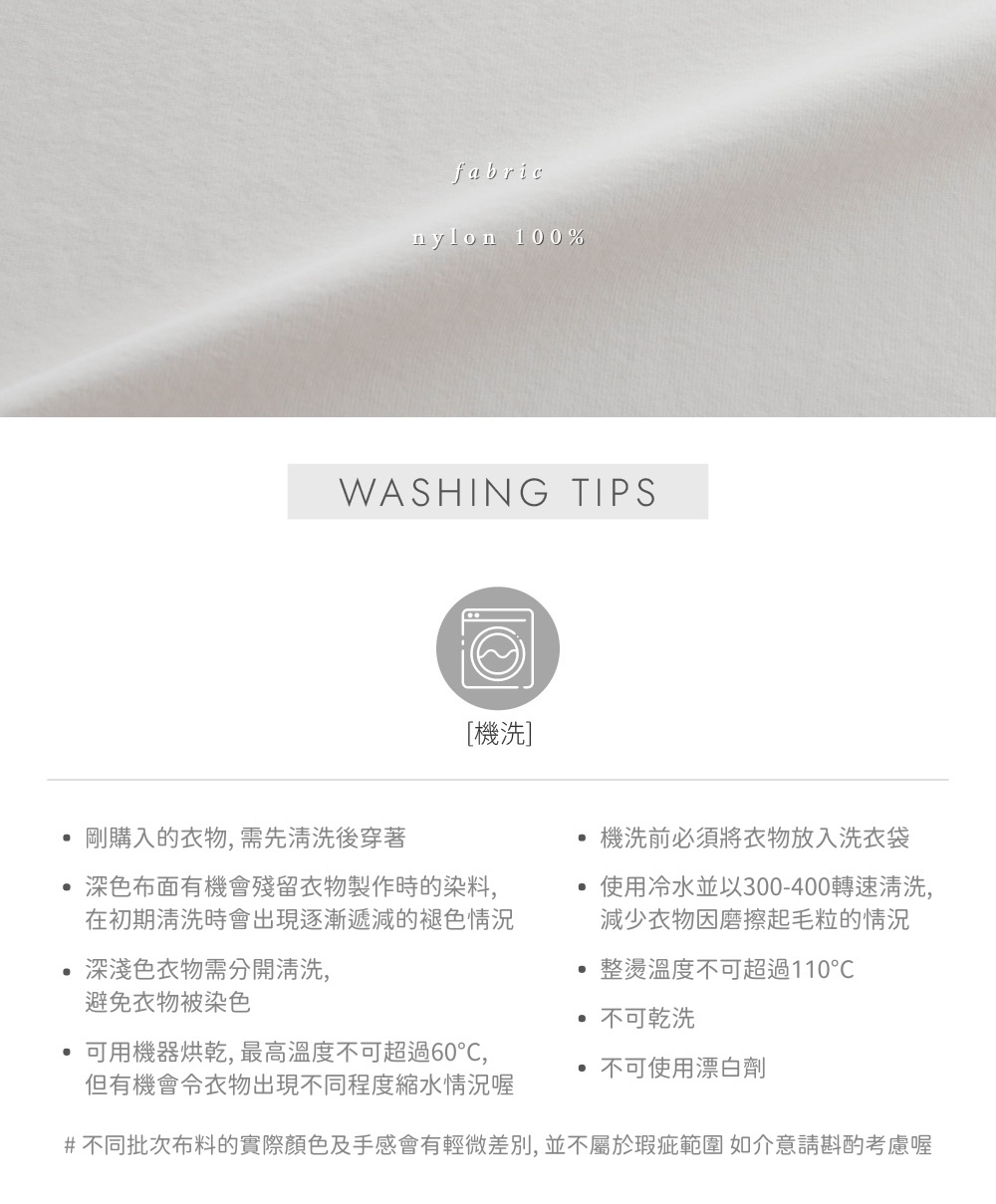 ⋄ 微皺感布面 洗後免燙!