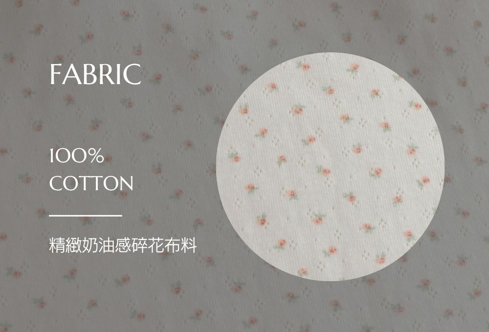 薄款 / 高彈性100%全棉布料 / 精緻奶油感碎花 / 柔軟canvas布質主標 / 適合春秋冬