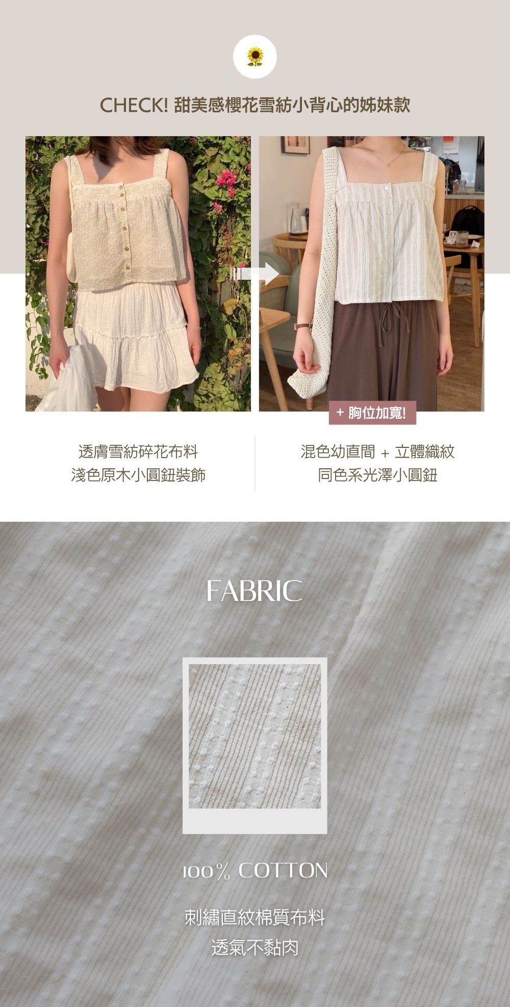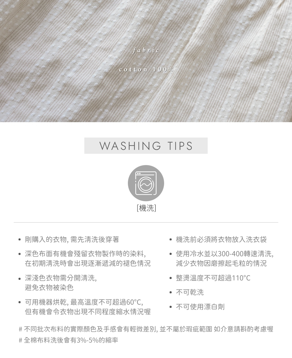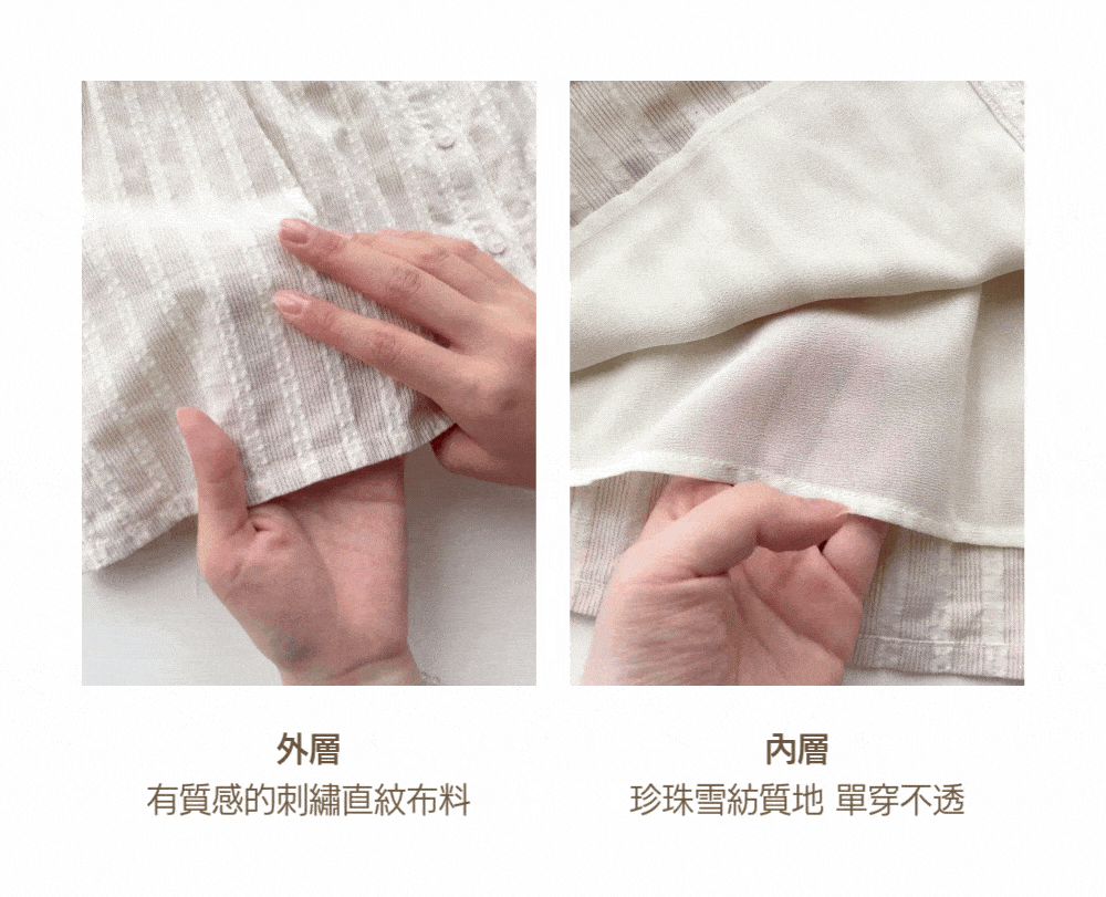 薄款 / 刺繡直紋棉質布料 / 內層為珍珠雪紡質地 / 單穿不透 /