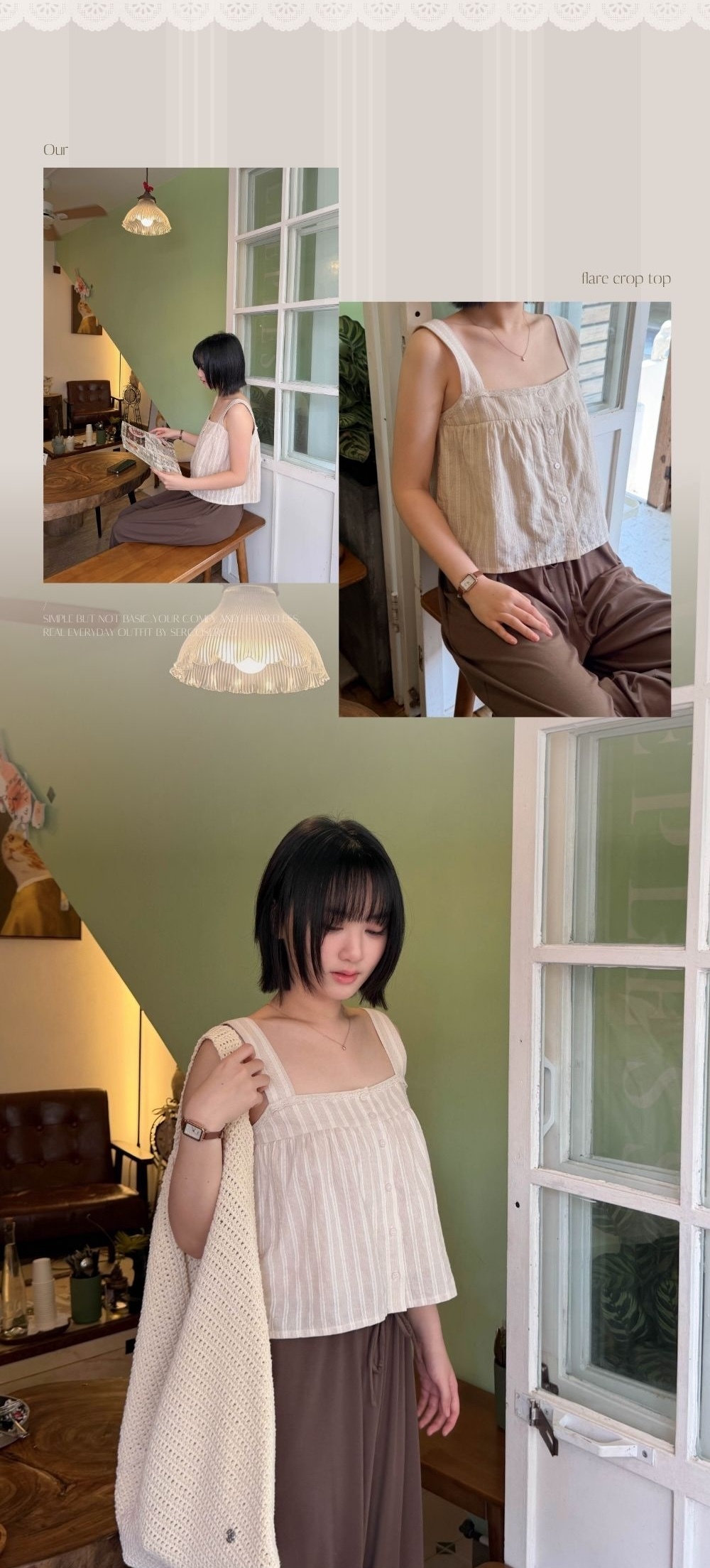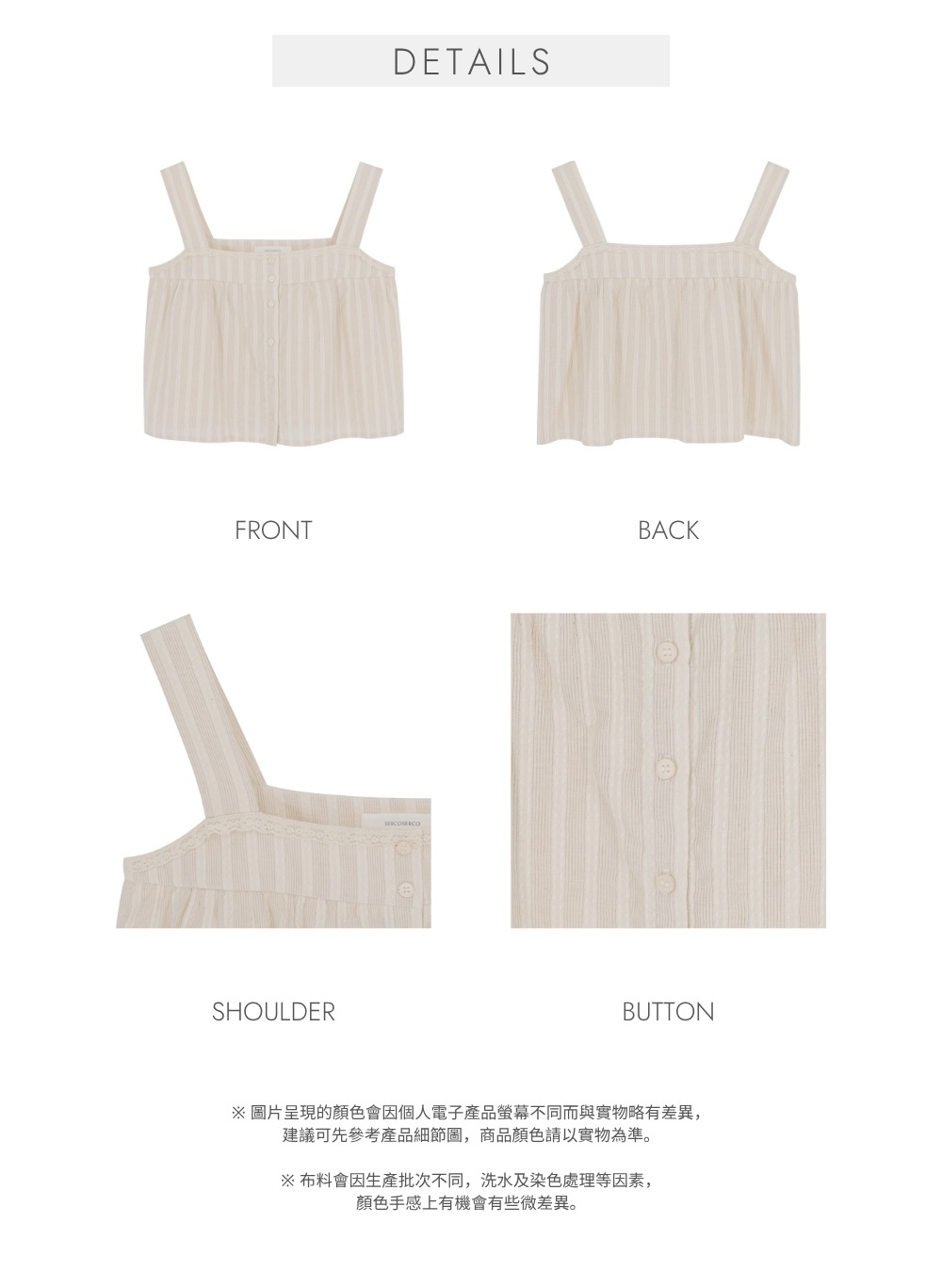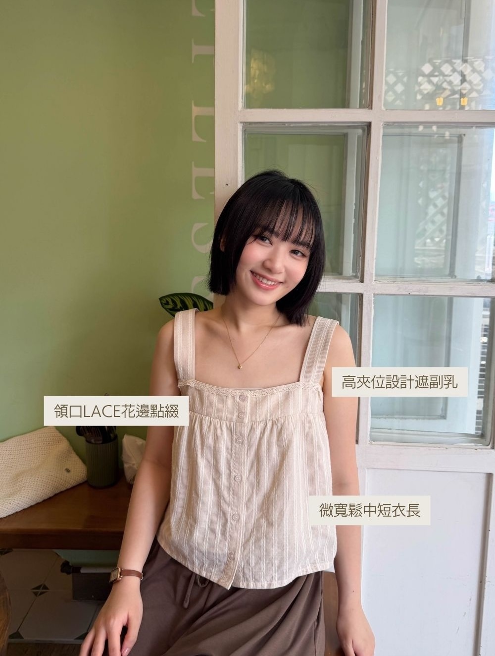 透氣不黏肉 / 同色系光澤小圓鈕 / 細緻lace花邊點綴 / 可配搭日常內衣